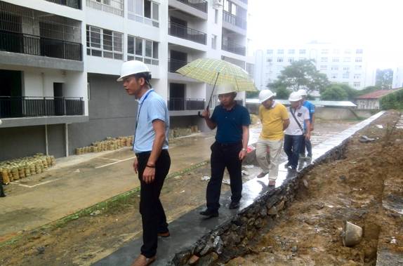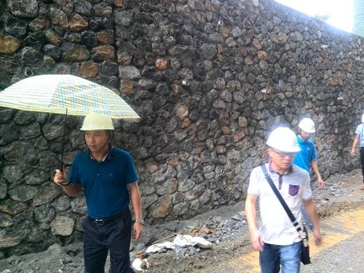 邓董事长在察看挡土墙建设情况