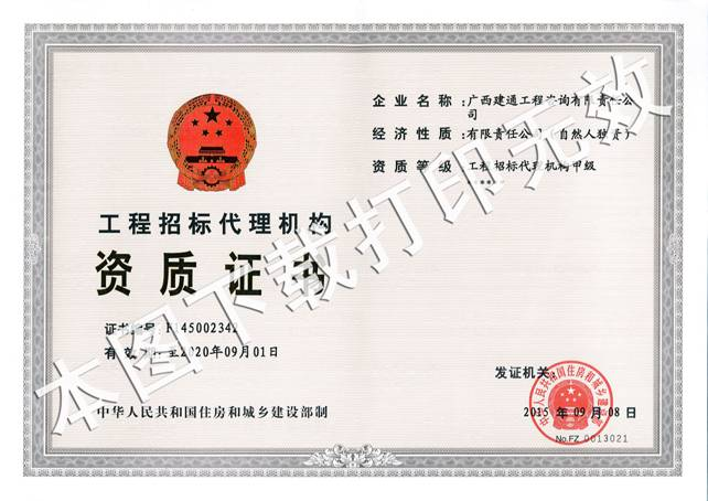 在集团、公司领导的关心、支持以及品牌公司资质申报全体人员的共同努力下,我集团旗下子公司广西建通工程咨询有限责任公司于2015年9月8日成功取得由中华人民共和国住房和城乡建设部颁发的工程招标代理机构甲级资质证书延续。广西建通工程咨询有限责任公司拥有一支技术能力强、专业程度高的招标代理人才队伍,致力于为业主提供优质的招标代理服务,公司的招标业务涉及房建、市政、桥梁、水利、公路等多个领域,囊括土木工程、建筑工程、线路管道和设备安装工程及装饰装修工程的勘察、设计、施工、监理以及与工程建设有关的重要设备、材料采购招标的代理业务,此次工程招标代理甲级资质延续的取得为公司招标代理业务的拓展提供了更广阔的空间,为公司从区域公司转型为全国性公司奠定了坚实的基础。公司将珍惜荣誉,为实现集团全国品牌发展战略保驾护航!