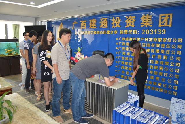 图一:集团百色总部员工在建通·中心广场营销中心排队领月饼