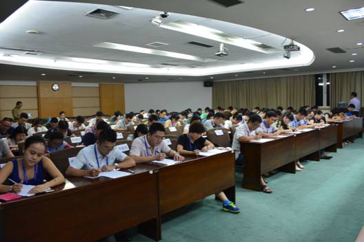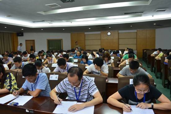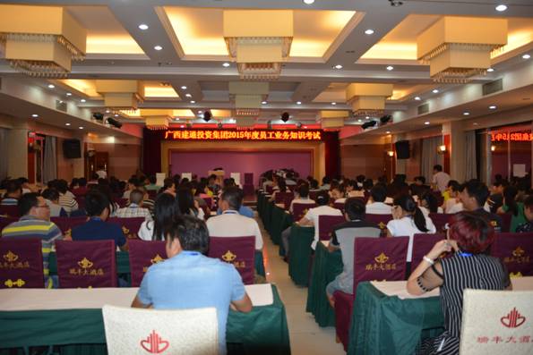 本次考试集团领导高度重视,由所有题目均由集团董事长亲自修撰,并于考前一天密封分别送到百色总部及南宁总部。经过学习备战及充分的准备,9月29日晚上七点半集团百色考场和南宁考场同时开考,两个考场均分别请来了几位特殊的监考员,他们都不是集团员工,严格的考场纪律有利于员工们更好地发挥。在考场里,集团百色总部、南宁总部全体员工终于迎来的这一激动人心的时刻。6点钟下班后,不少员工早已按耐不住内心的热情,早早的到达考场,找到自己的位置后,便开始争分夺秒的认真复习起来。时间一分一秒的过去,员工们也陆陆续续的来到了考场,对业务知识掌握较为熟练的员工则静静的在考场上调整好心态等待考试,虽然还没有到考试时间,但考场早已如同考试中一般的安静。随着考试铃声的敲响,南宁总部在集团第二综合办公室主任熊莎莎经理和监考老师的主持下,百色总部在集团第五综合办主任徐 青的和监考老师的主持下,佩戴好工牌静静的坐在自己的位置上等待老师下发试卷。在考试的过程中,每位员工严格要求自己,遵守考场纪律,都能在规定的时间内完成所有的答卷。表面似风平浪静,实际如惊涛骇浪。经过长达1个小时的奋战,终于顺利地结束了2015年员工业务能力知识的考试,在监考老师的严格监督下,考场纪律井然有序,未发现有作弊现象,所有考员均有序的离开了考场。离开考场后,大家三三俩俩地聚集在一起,纷纷发表对考题的看法,对计算题过程结果进行讨论,那激动热切的场面如同高考结束般的放松。