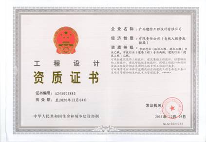2015年12月11日,从广西住房和城乡建设厅官网传来喜讯,我集团旗下子公司广西建信工程设计有限公司顺利通过了广西住建厅资质审查,成功增项市政行业(给水工程、排水工程)专业乙级资质。这标志着公司的经营发展迈出了关键性的一步,在设计领域取得了突破性的进展,拓伸了公司的设计业务空间,为整个公司的持续快速发展奠定了良好的基础。
