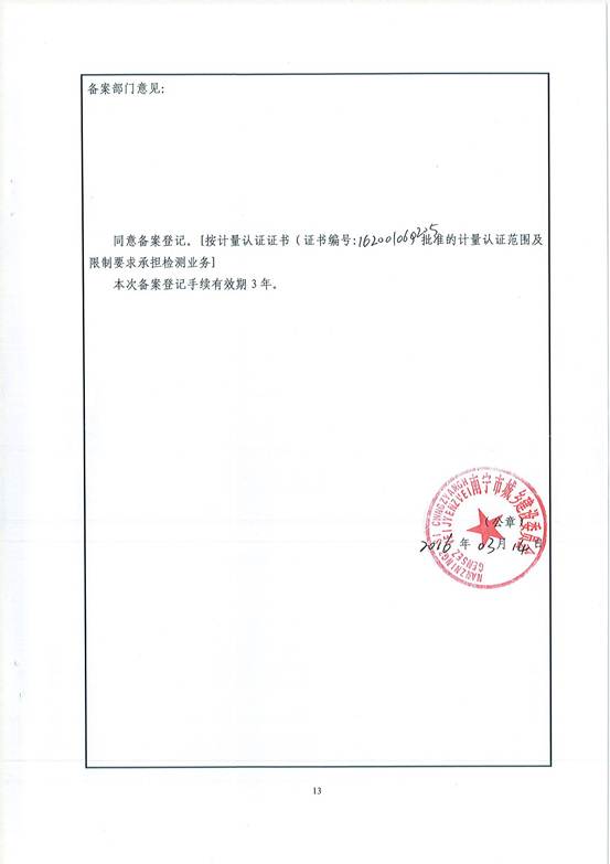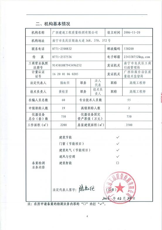 经上级主管部门审核,检测公司于2016年2月份通过建筑节能检测资质备案。