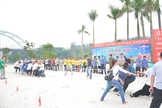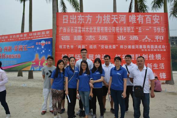 为加强“两新”组织间的交流合作,展现党员职工的精神风貌,增进彼此友谊,让大家度过一个愉快的“五一”国际劳动节,中共百色市“两新”党工委举办了百色市“两新”组织“劳动光荣”杯沙滩拔河比赛,我公司响应号召,于2016年4月29日上午08:30,在百色市沙滩公园(百林桥头)参加了比赛。