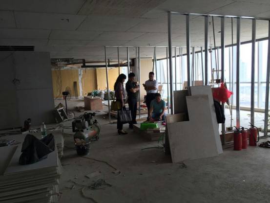 7日上午,邓安杰董事长在完成此次行程的其他工作后,顾不上午休就到了位于广州市海珠区的集团广州总部办公室的装修现场进行现场指导。在施工现场,他深入细致地向现场施工的人员进行专业的指导,对各个办公室的装修格局的定位、室内办公家俱的配置以及各种材料的选定都进行了耐心的指导,并明确指出广州总部是集团面对全国的窗口,装修工程一定要高标准、严要求,既要节约资金又要达到高大上的装修标准,尽最大可能追求完美。