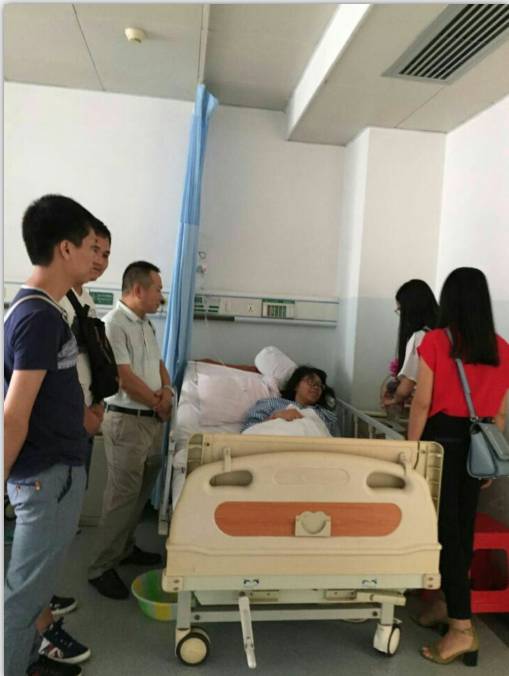 罗新华常务副总经理在亲切询问了相关病情和治疗情况后,转达了集团领导及每一位同事的关怀之情和祝福,并代表集团领导叮嘱吴钊莹要安心养病,配合医生治疗,若是有什么需要帮助,集团将极力配合提供支持,也希望她能保持乐观的心态并祝愿她早日康复出院!