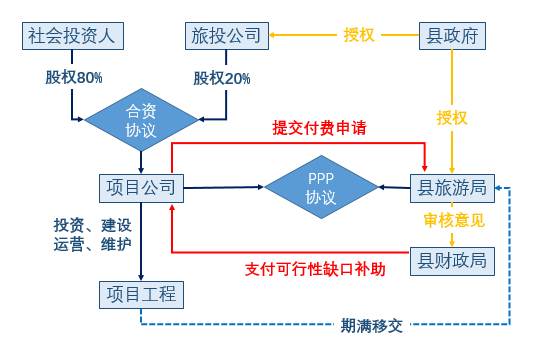 (2)实施机构依法定程序选择社会资本方,社会资本方与“旅投公司”签署股东协议,共同出资组建项目公司;