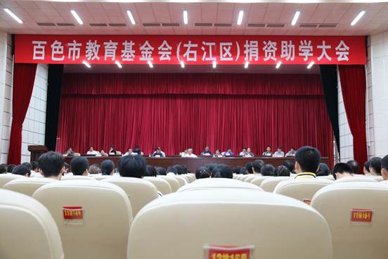 2017年10月20日下午,百色市教育基金会在右江区人民政府礼堂召开捐资助学大会。市人大常委会原副主任、市教育基金会理事长石卫武、市教育基金会代表、区委办、宣传部、财政局、审计局、人社局、卫计局、食药监局、文体局、科技局、旅发局、妇联、总工会、团区委、受助学生(小学生、初中生、高中生、中职生、大学生)及家长代表、各中小学学校校长、百色中学建通助学班、百色中学甘化助学班约200人出席会议。建通投资集团副总裁黄承理应邀出席了会议。