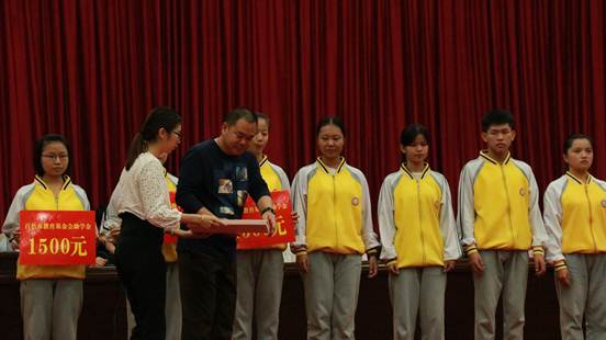 首先,石卫武理事长代表百色市教育基金会作重要讲话。他说,百年大计,教育为本;千秋大业,人才为本。中国未来的发展,中华民族伟大复兴,中国梦的实现,关键靠人才,基础在教育。百色是个老、少、边、山、穷、水库移民集于一身的地区,由于历史等各种原因,社会经济发展相对落后,教育发展也相对滞后,与发达地区相比差距较大。因此,要迅速改变百色的后进面貌,关键在于加快教育发展,尽快提高全民素质。百色市教育基金会的成立,在捐资助学上虽然有个良好开局,但要真正夯实基础,发展壮大,使其良性进行,持续发展,还需要各级党委政府、爱心企业、社会各界人士的大力支持。在这方面建通投资集团作了很好的表率,作为百色土生土长的企业,在集团成立时间不是很长、还需许多资金拓展市场业务的情况下,邓安杰董事长毫不犹豫,积极响应号召,慷慨解囊,2014年8月2日,在建通中心营销中心开放仪式上向百色市教育基金会捐款了100万元,冠名成立了首届“百色中学特困高中生建通助学班”;今年9月23日,在建通投资集团百色总部乔迁庆典仪式上,建通投资集团再次向百色市教育基金会捐款100万元,用其增值部分资助乐业县高中50名家庭经济困难学生完成学业。建通投资集团做了一件功在当代、利在千秋的事情!紧接着,百色市教育基金会给爱心企业颁发匾牌,受助小学生、初中生、高中生、中职生、大学生家长代表分别上台领取助学金,并与捐赠领导合影留念。最后,受助学生和右区教育局领导分别在会上表决心。他们坚决表示时刻心怀一颗感恩的心,不忘来自社会各界的关爱,在同一片蓝天下沐浴着爱心企业的阳光雨露,茁壮成长,发奋图强,成为国家栋梁之材!