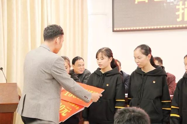 集团副董事长黄树威和集团副总裁罗杰为乐业县建通助学班的同学颁发助学金