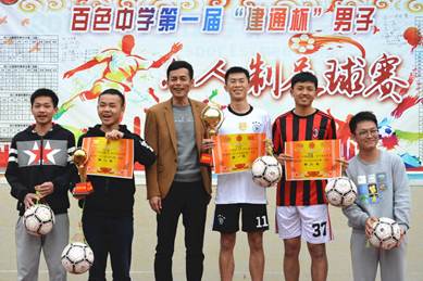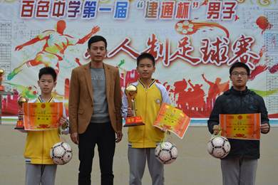 “感谢建通投资集团捐资赞助百色中学开展足球联赛,通过比赛,同学把团结协作、顽强拼搏、勇攀高峰的竞技精神转化为强大的学习动力,达到了预期目的!”这是2017年12月26日16时30分,百色中学黄振刚副校长在首届“建通杯”校园足球联赛闭幕致辞时说出的一番肺腑之言。建通投资集团副董事长黄树威应邀出席闭幕式并为获奖班级颁奖。