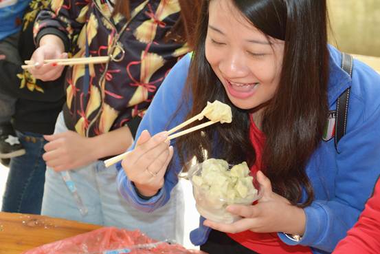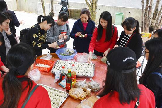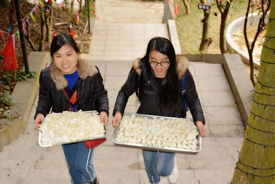 围着大圆桌的同胞们有说有笑的包着饺子,我们集团的女同胞们不仅是工作上的能手,生活中也是心灵手巧。圆圆的饺子皮象征着团圆,愿我们不管在什么环境下都能团结一心的为着同一个目标而努力奋斗。