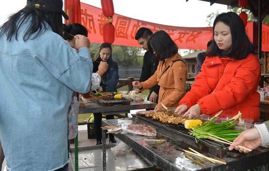 集团烧烤乐无穷,欢声笑语不休停。何羡神仙安闲道,真正逍乐在人间。