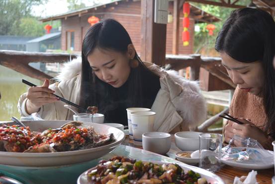 到达美丽的石湖山庄,同事们被这里独特的风景所吸引,纷纷拿起手机拍照留念,随后在工作人员的引领下,女同胞们围坐在餐桌前交流工作生活中的趣事。当一道道鲜美可口的美味佳肴呈现在眼前时,无不令人食欲大增,借此机会女同胞们端起手中的酒杯向集团领导们表达了忠心的谢意,餐厅里充满了大家的欢声笑语。