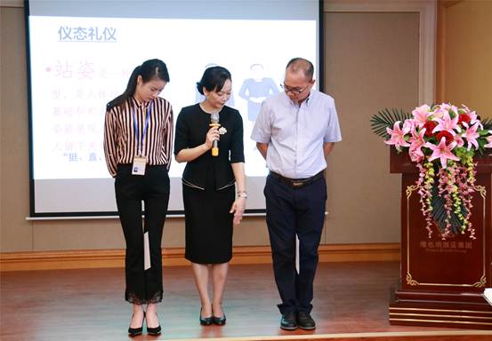 为了达到更好的培训效果,青羽老师通过现场互动及现场示范的形式调动气氛,寓教于乐不仅增强了参训人员的参与性与积极性,而且使现场人员加深了对商务礼仪知识的理解。
