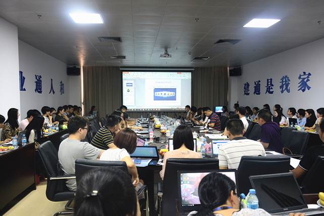 根据集团办公自动化系统建设的总体安排,集团“建通宝”OA系统初步搭建及调试工作已完毕,即将在集团范围内以及合营分公司上线运行,为使集团总部各部门、集团各事业部、各合营分公司(区内)能够熟练掌握OA系统操作,确保工作正常开展,促进集团与合营分公司(区内)之间的交流联系,建立良好合作基础,集团于2018年5月31日在建通中心2号楼A座2楼会务中心举办“建通宝”OA系统操作培训。集团常务副董事长罗  程、集团副总裁罗  杰、集团总裁助理熊莎莎、 集团第二秘书处秘书长覃艳妙及集团总部各各部门/各事业部/各合营分公司(区内)负责人及OA系统专职人员共计90人参加, 本次培训由集团常务副董事长罗  程主持。