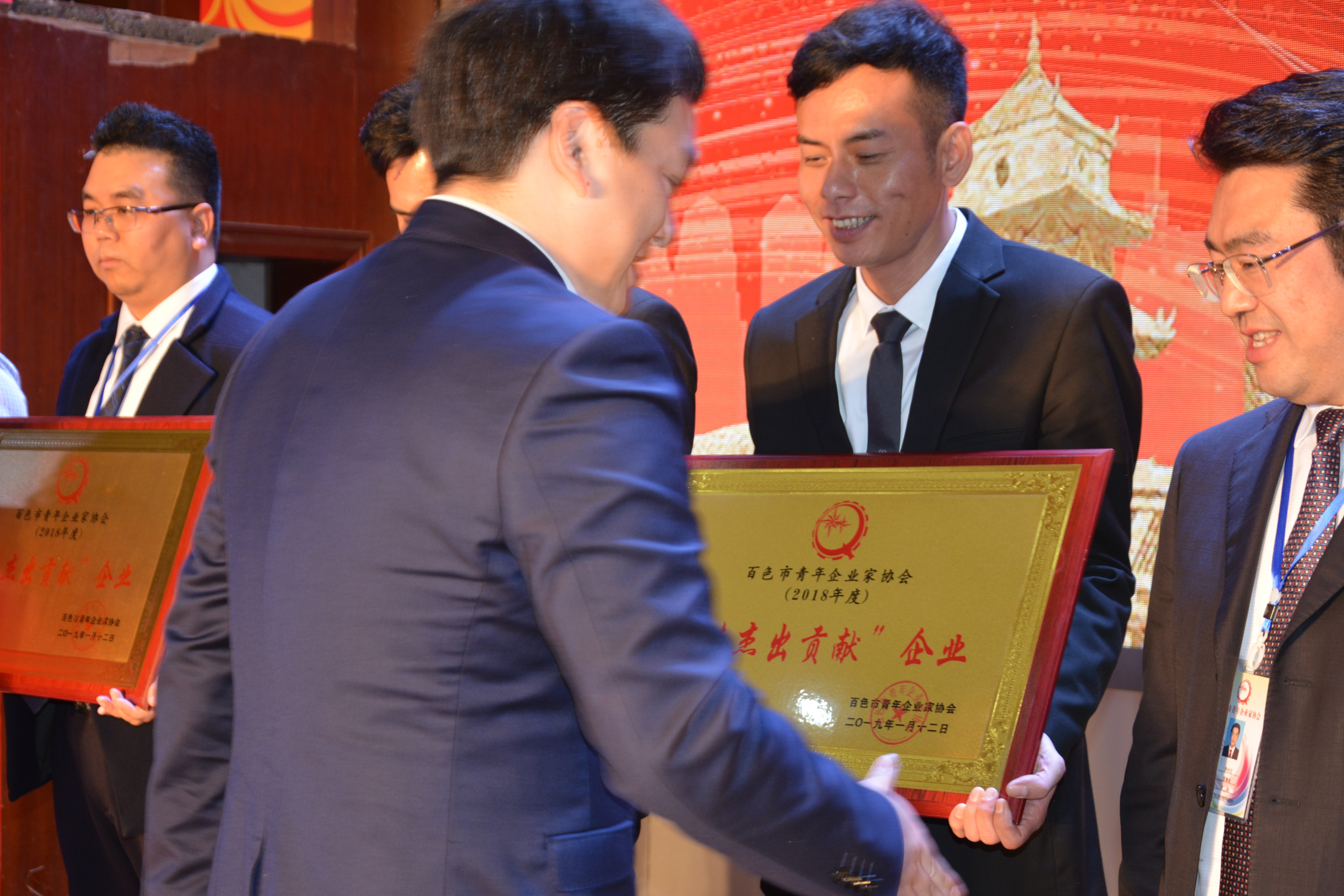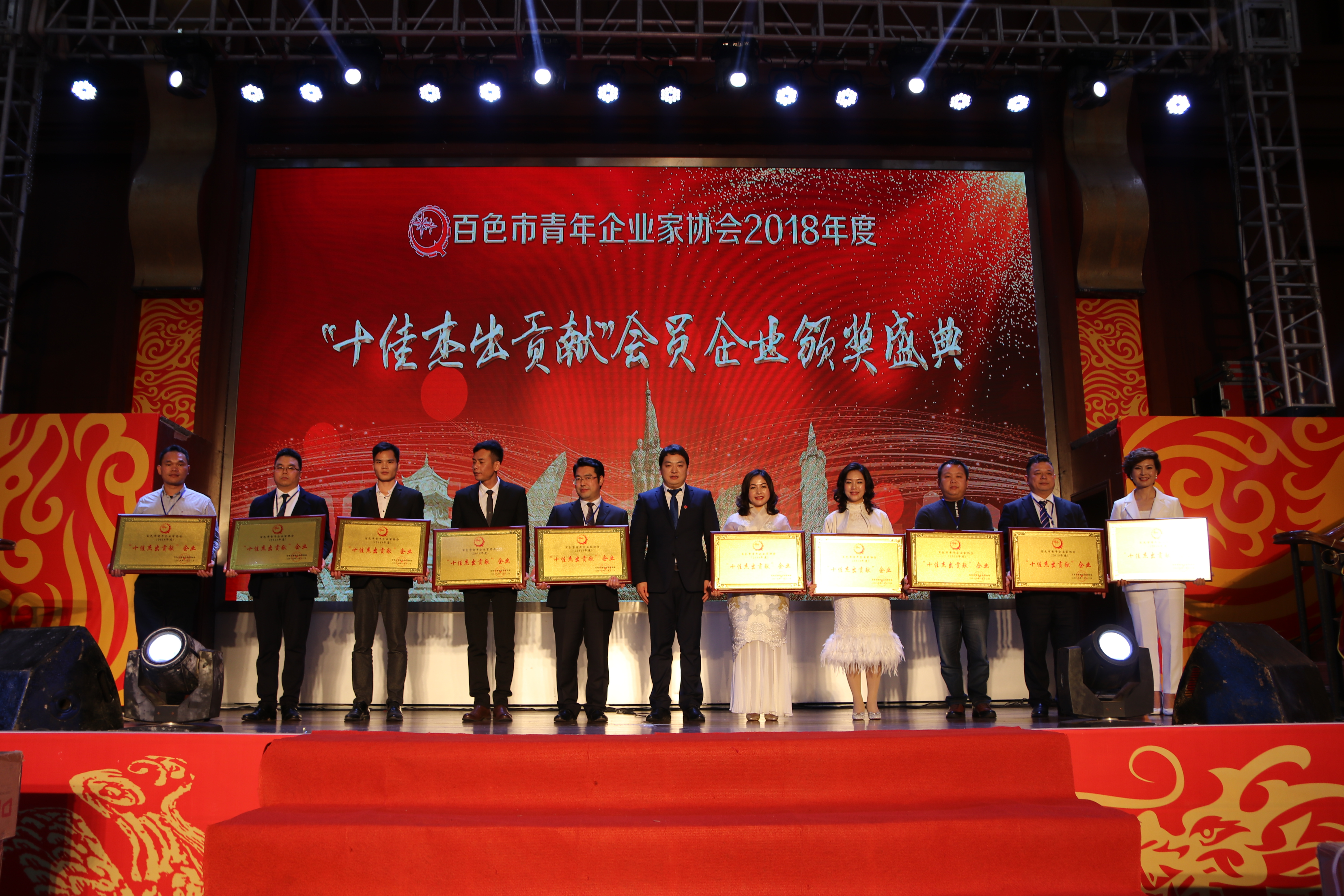 盛会上,百色市团市委书记白玛泽仁亲自为百色市青年企业家协会2018年度 “十佳杰出贡献”会员企业颁奖,建通投资集团副董事长黄树威先生代表集团获此殊荣,倍感荣幸。集团将一如既往秉持“建通是我家,发展为大家”的集团核心价值观,保持与青企协会的密切交流,时刻关注红城经济事业发展,齐心协力推动百色城市化进程。