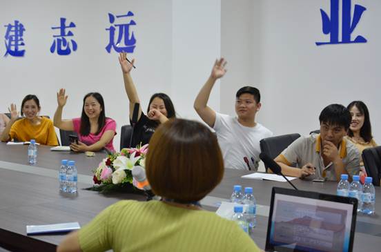 为使学员快速进入学习状态,拉进学员彼此之间的距离,增强现场互动气氛。主讲师还增加了抢答环节。抢答过程中,新同事们均不甘示弱,积极抢答,现场气氛十分活跃。