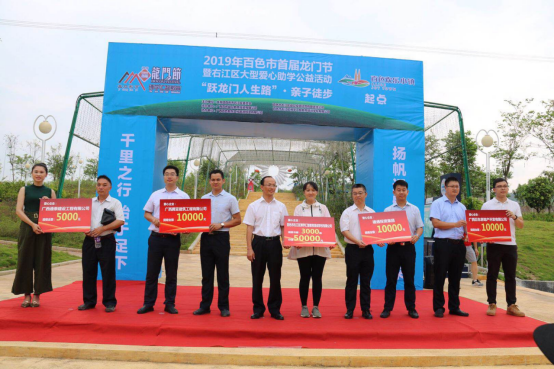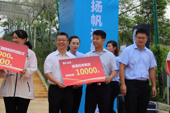 2019年06月29日上午,建通投资集团为百色市首届龙门节“跃龙门人生路——21里亲子徒步” 暨右江区大型爱心助学公益活动捐赠1万元。建通投资集团韦霖副总裁代表集团出席本次捐赠仪式。