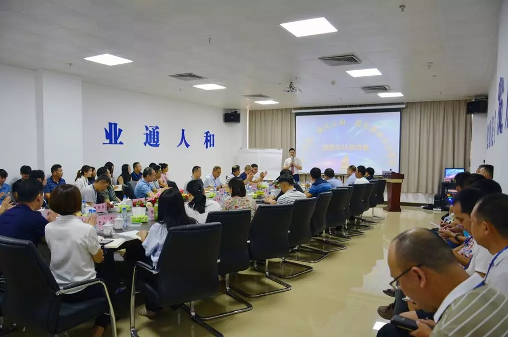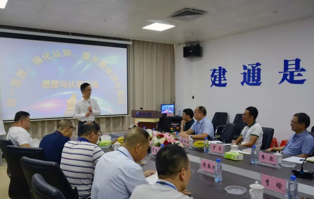 2019年08月21日早上10:30至13:00,建通投资集团在百色建通中心2号楼2层会务中心多功能厅召开“思想与认知提升”主题培训会。集团全体董事及中层管理人员、董事长特批人员共80余人参加了此次培训会,会议由中旭集团张景阁副总裁主讲。
