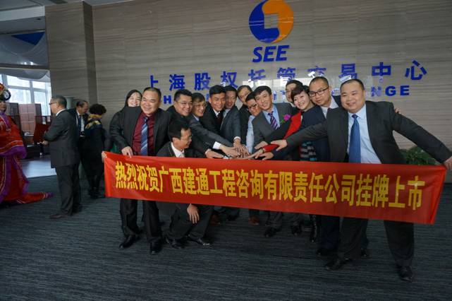 在挂牌仪式上,集团董事长邓安杰发表了热情洋溢的致辞,他首先感谢上海股权托管交易中心及广西博智融投公司对集团的支持,并向出席挂牌仪式的企业家及政府代表、客商们介绍了广西建通投资集团的发展历程,技术力量,管理理念,资产结构,业务范围。他强调,本次Q板挂牌,是国内资本市场对集团品牌和未来发展潜力的肯定和认可。集团将以本次Q板挂牌为契机,逐步完善集团内部股权结构,促进集团管理理念及管理能力的提升,同时本次Q板挂牌将极大提高“建通”品牌在业内的知名度及美誉度、增强集团凝聚力、向心力、归属感及荣誉感。将对“建通”品牌在全国范围的推广发挥至关重要的作用。Q板挂牌只是一个良好的开端,集团将在未来的经营发展当中不断学习,勇于开拓进取并根据董事会年初制定的三年全国战略发展布局,在目前国内五十家分公司的基础上增加至三百家分公司的同时新增工程咨询甲级,房屋建筑设计甲级,市政工用工程设计甲级,房屋建筑工程施工总承包一级等四项资质。“德建志远 业通人和”是集团发展的口号,“建通是我家 发展为大家”是集团的核心价值观。本次Q板挂牌,标志着集团发展方向和发展模式的重大战略性转变。Q板挂牌将帮助建通集团实现二次腾飞,将帮助建通人实现优秀到卓越的梦想!我们有信心把广西建通投资集团建设成为国内建设工程领域一流的上市公司!力争在2017年登陆国内创业板!