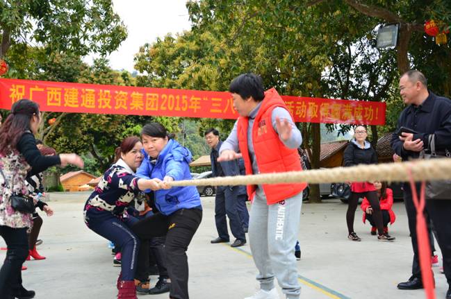 本次活动于上午10:00从建通创业大厦一楼集合准时出发,一路上,同事们的笑声不时回荡在车厢中,10:30左右抵达环境优美的“裕和山庄”,11:00点开始进行各种趣味活动。活动开始就直接进入激动人心的“拔河比赛”,裁判的一声哨响,比赛开始,双方队员一个个握紧绳子,脚蹬着地,身体向后倾,拼命向自己的方向拽绳子,绳中间的红绸带一会儿移向左,一会儿又移向右,各队互不相让, 一副绝不轻易认输的架势。工作人员和围观的人员更是齐声呐喊,不停地为场上队员加油鼓劲。经过一轮淘汰赛和最后的决赛,实力强悍的财务一部、财务二部、监理公司组成的“一队”勇夺第一。