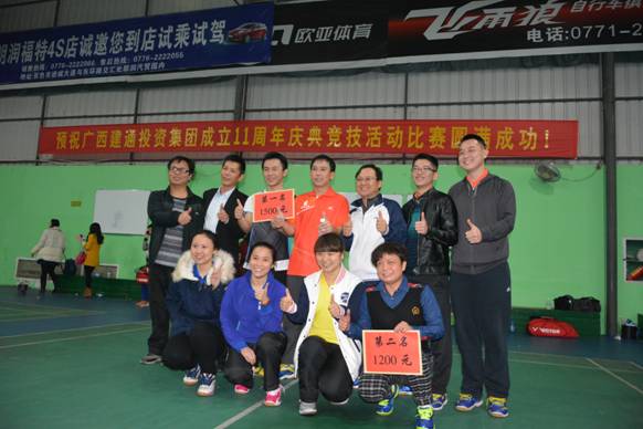 为热烈庆祝集团成立十一周年,积极促进集团内部沟通交流,增进集团员工友谊,展现集团员工个人及团队风采,培养员工的集体荣誉感和责任心。当日晚19时许,集团2014年度年会竞技活动比赛在大型羽毛球馆火热举行!本次竞技活动比赛的内容有拔河比赛和羽毛球比赛,首先参加拔河比赛的队伍分别是集团百色总部一队、百色总部二队、集团南宁总部队、集团直属分公司队,四支队伍分别抽签后依次展开了激烈的角逐。其次参加羽毛球比赛的队伍分别是集团百色总部羽毛球队和南宁总部羽毛球队,共有28名选手参与。比赛采用七场四胜混合团体双打对抗制,历经3个多小时猛烈对决,双方队伍均展现出了建通人团结拼搏、奋发进取、争创佳绩的体育精神和人文精神!集团2014年度年会竞技活动比赛的举办取得圆满成功!