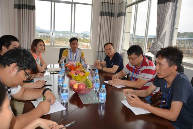 图一:集团副董事长黄树威、集团副总裁黄承理、董事会秘书处综合三部主任覃艳妙、检测公司副总经理覃佳伦倾听检测公司员工做工作汇报